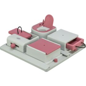 each compartment must be opened using a different method - lid, drawer, rope and sliding knob