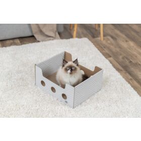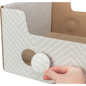 features a double-sided scratching mat for even extended scratching fun- just flip it over once one side wears out